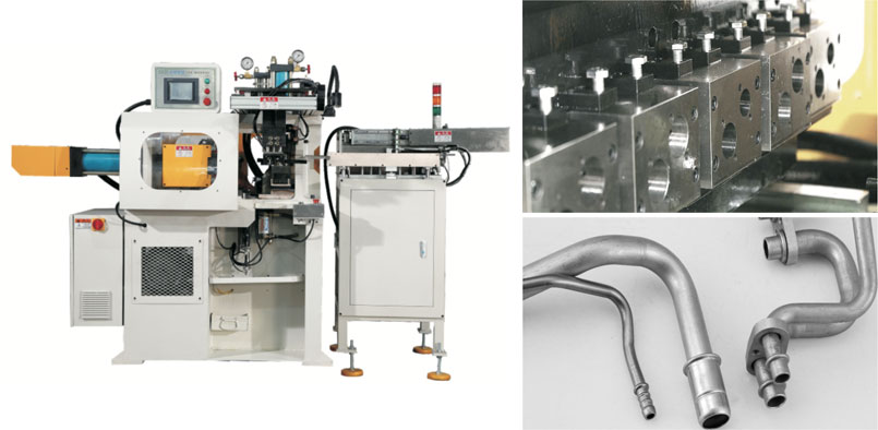 End forming machine is mainly used for the cold extrusion deformation of steel, copper, aluminum pipe heads to achieve a certain shape of processing requirement. At the same time, we can integrate automatic feeding and unloading system to realize highly automatic production.